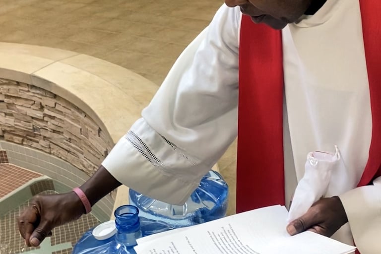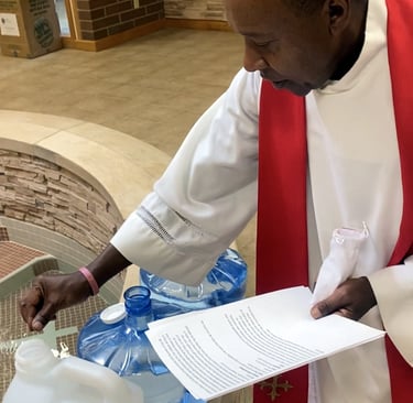 We are so grateful to have Father Peter, James, of Immaculate Conception Church is Exorcise the salt and Exorcis the water before blessing them, according to the Rituale Romanum Rite.