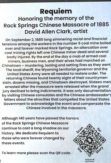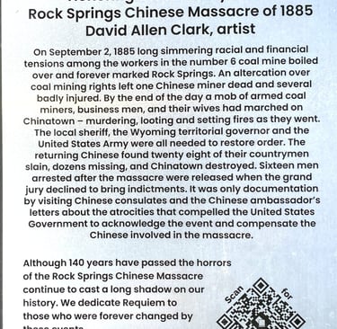 Repairing our ancestors is very important to the Chinese. My daughter can trace her ancestry back 34 generations to the year 900 to someone that was an accountant at that time. We know 28 were slaughtered here, but just several dozen were missing. Who were those missing. The Chinese always put the names of their parents on their grave. Rather than sons and daughters. . This makes it easy to trace your ancestry back will all our Chinese ancestries in rock Springs. Look back to where it says they went missing after their houses were burned, the police would not control it. No one would testify against the murderers and the surviving Chinese had to hide in the hills to the militia move them to Green River are Chinese ancestors deserve to be honored not have this house of God converted into some wedding chapel for same-sex couples or at extension on the bareback gentlemen's club.